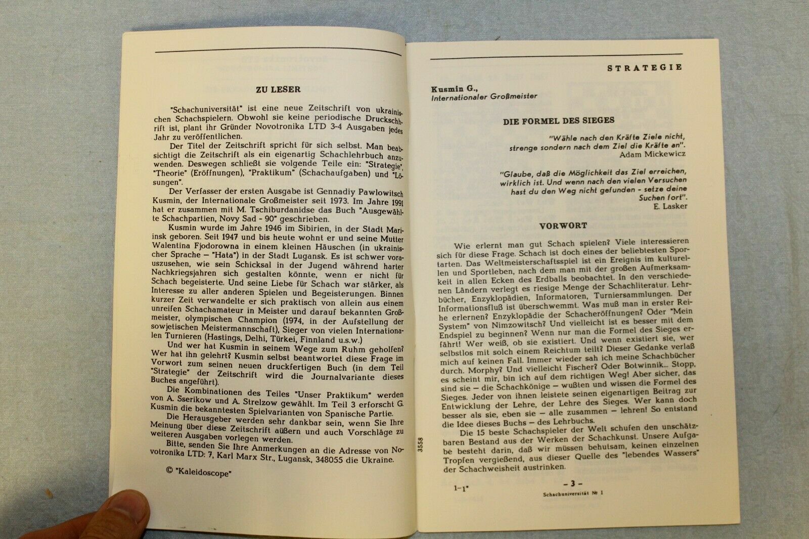 2 Chess Tutorials: Schach Universitat 1 and Chess University 2. Kuzmin. 1993