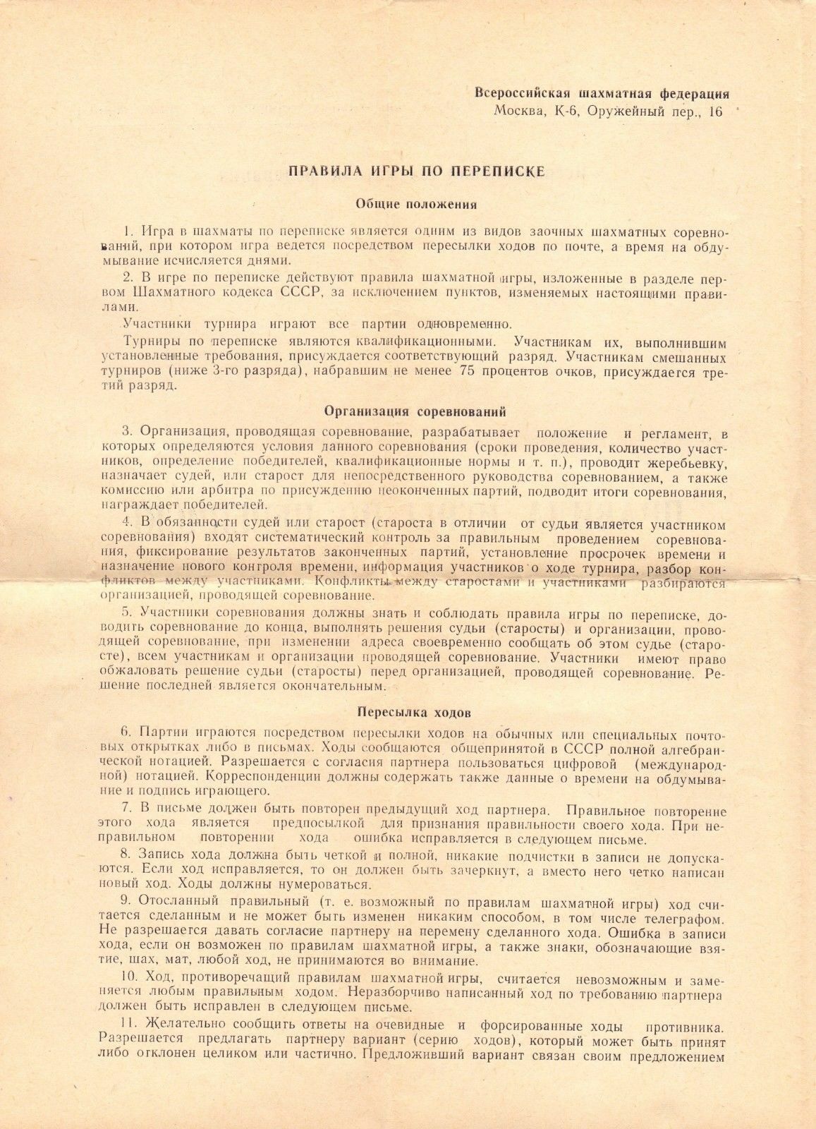 SOVIET CHESS BROCHURE "CORRESPONDENCE CHESS RULES" USSR