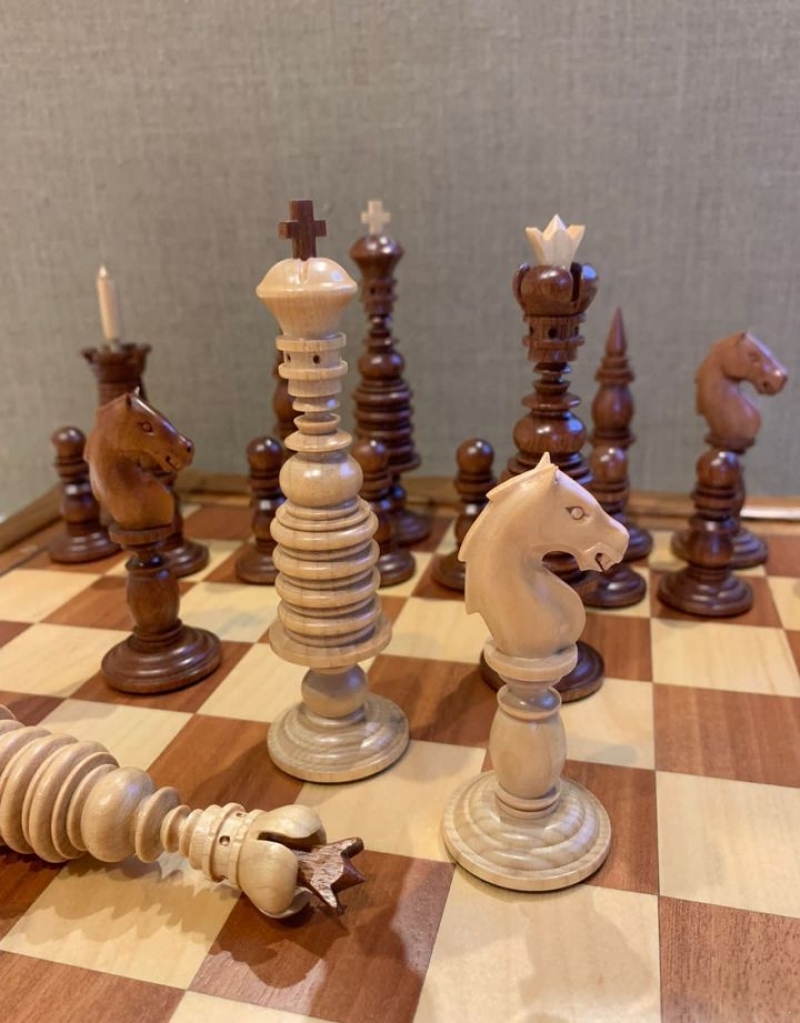 -Large sizes add weight to the game, and representativeness to the set. This is one of the reasons why barleycorn chess quickly gained popularity in Europe.