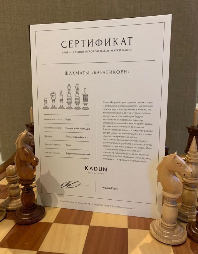 Chess "Barleycorn" (light board) Kadun. New with original box. (Price on the official website 90200 Rubles)