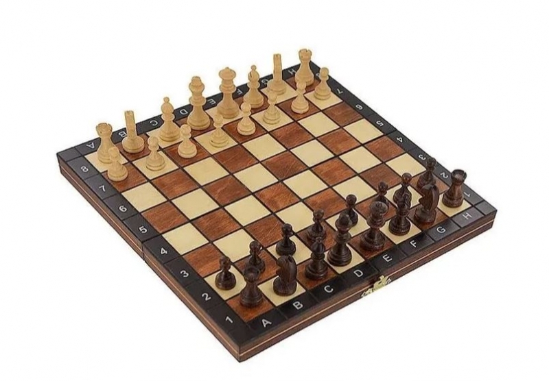 Travel wooden magnetic chess with board / Chess magnetic (Poland) (Madon)